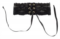 Choker made of black lace with 6 eyelets and satin lacing to tie the choker together and to... more